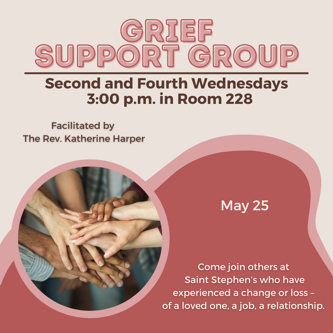 Come join others at Saint Stephen’s who have experienced a change or loss – of a loved one, a job, a relationship. We will gather to pray, share, reflect, and learn in a small group setting. If you have questions, please contact the Rev. Katherine Harper at katherine@ssechurch.org.