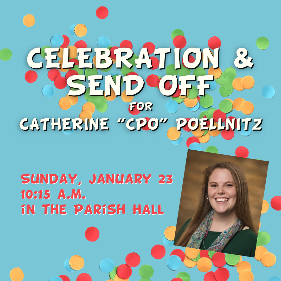 Celebration & Send Off for Catherine "CPo" Poellnitz Sunday, January 23, 2022 10:15 AM 11:00 AM Saint Stephen's Episcopal Church 3775 Crosshaven Drive Birmingham, AL, 35223 United States (map) Google Calendar ICS