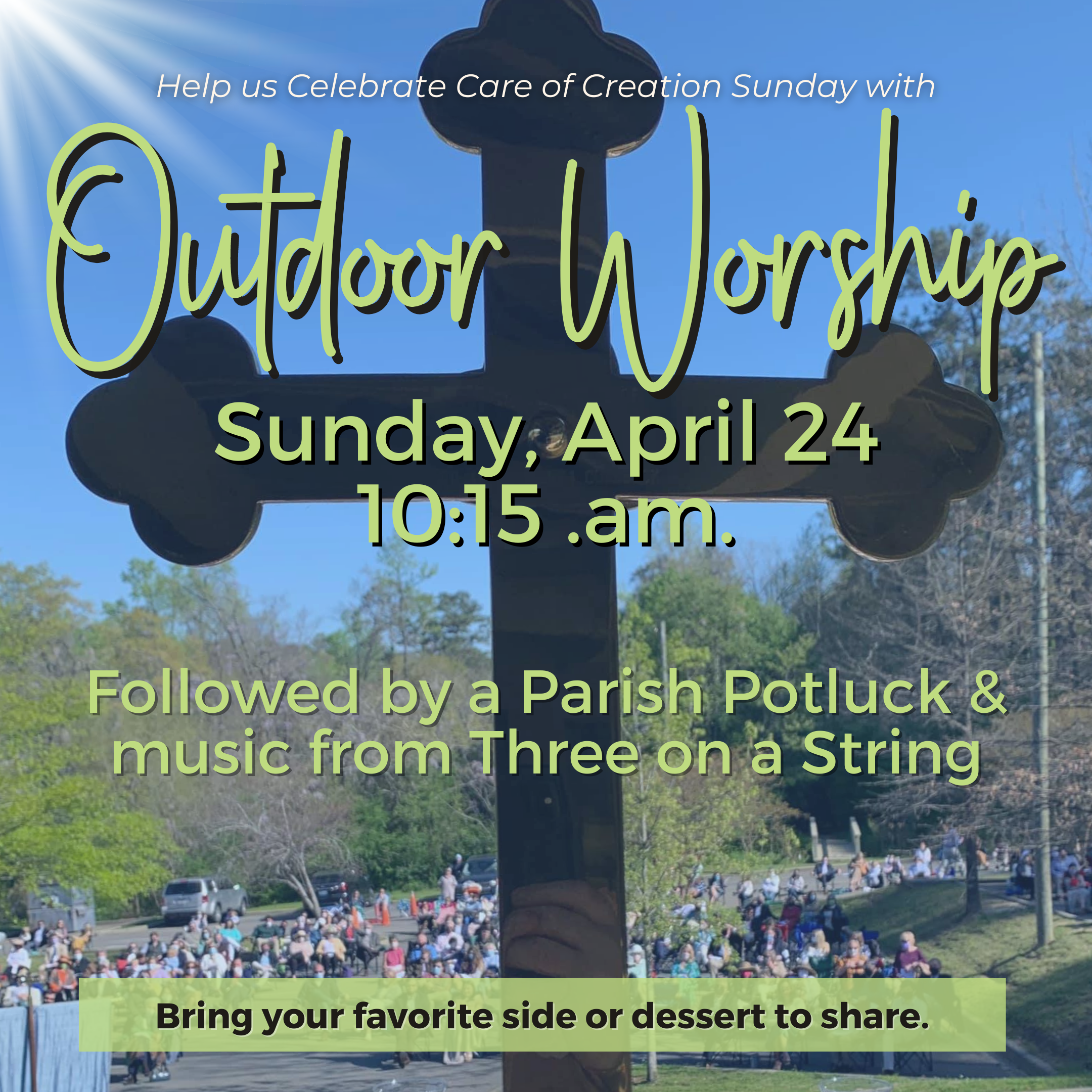 Grab your chairs and blankets and join us Sunday morning for Outdoor Worship and Care of Creation Sunday. Three on a String will be providing our music.