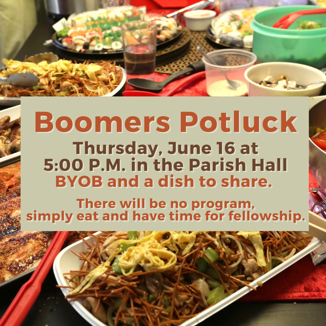 Boomers Potluck Thursday, June 16, 2022 5:00 PM 7:00 PM Saint Stephen's Episcopal Church 3775 Crosshaven Drive Birmingham, AL, 35223 United States (map) Google Calendar ICS