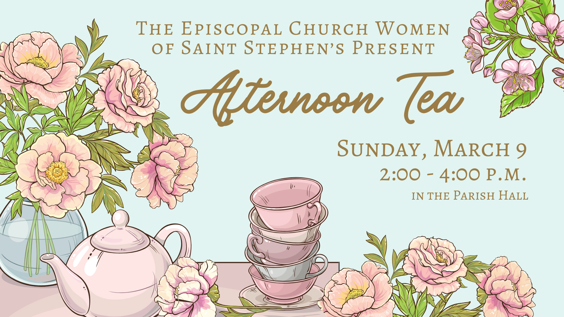 Please join us on SUNDAY, MARCH 9 from 2 to 4 p.m. to celebrate the 23rd Saint Stephen's ECW Afternoon Tea.