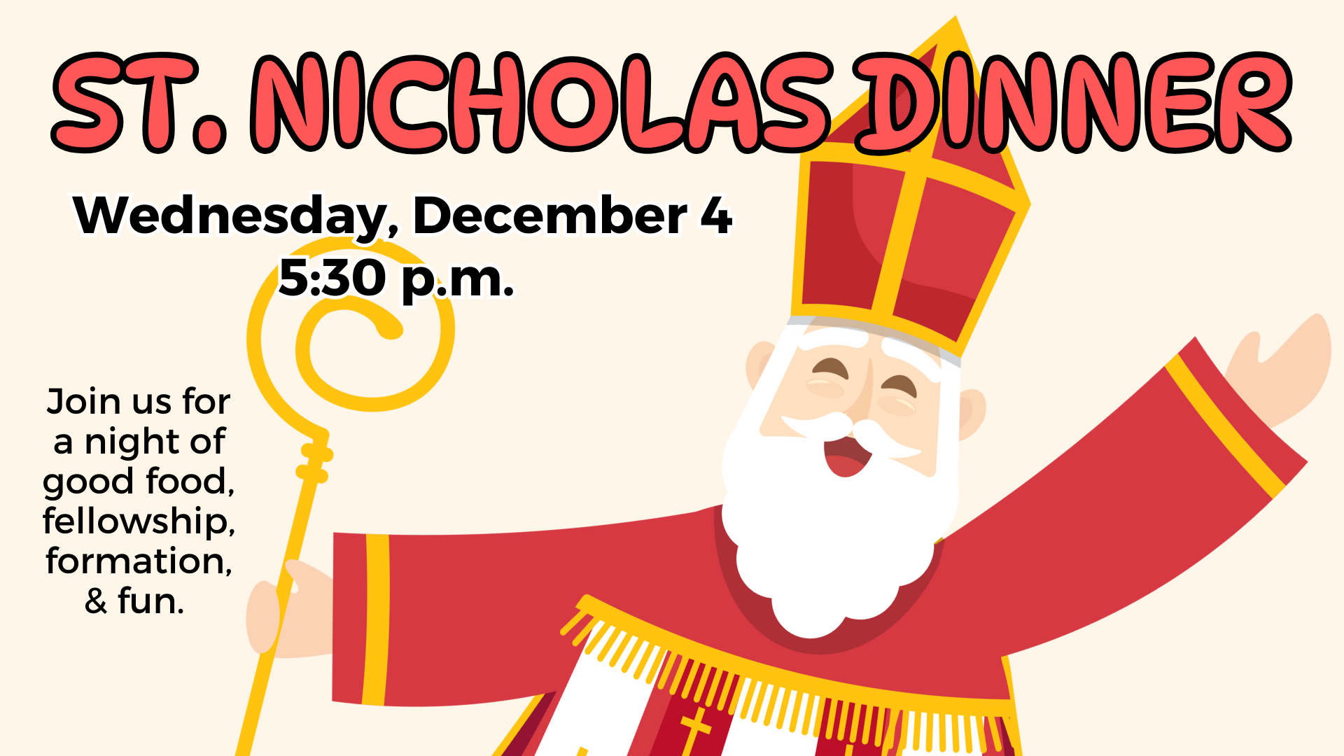 Make plans to come to Saint Stephen's for dinner on Wednesday, December 4. We have a delicious meal, family friendly outreach projects, and St. Nicholas activities planned for people of all ages. St. Nicholas might even make a special appearance at Saint Stephen's!