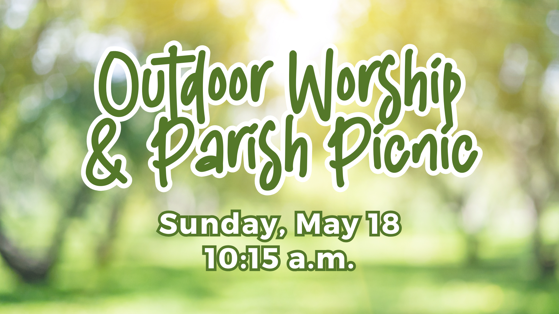 It’s our annual parking lot church, music by Three on a String, and potluck lunch with games and fellowship.
