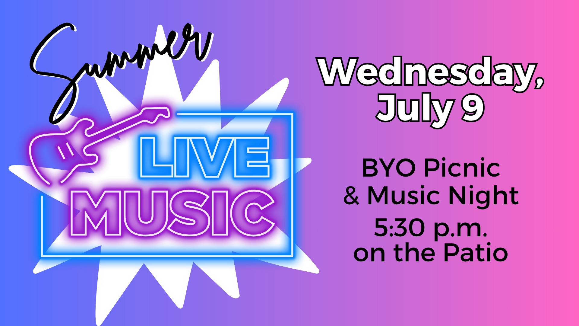 Pack your picnic basket or grab your favorite carryout and make plans to join us on the patio. We have some great talent lined up for you from our own SSEC family.