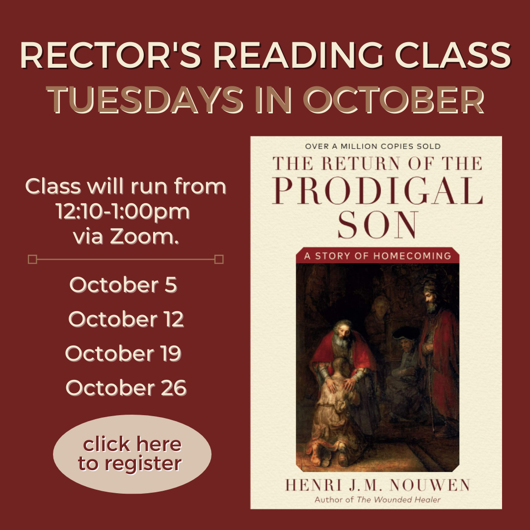 The Rector’s Reading Class is a discussion class that aims to engage people with meaningful and thought provoking texts through listening and conversation with each other.  On the first class of the month, the book will be divided into sections for reading.