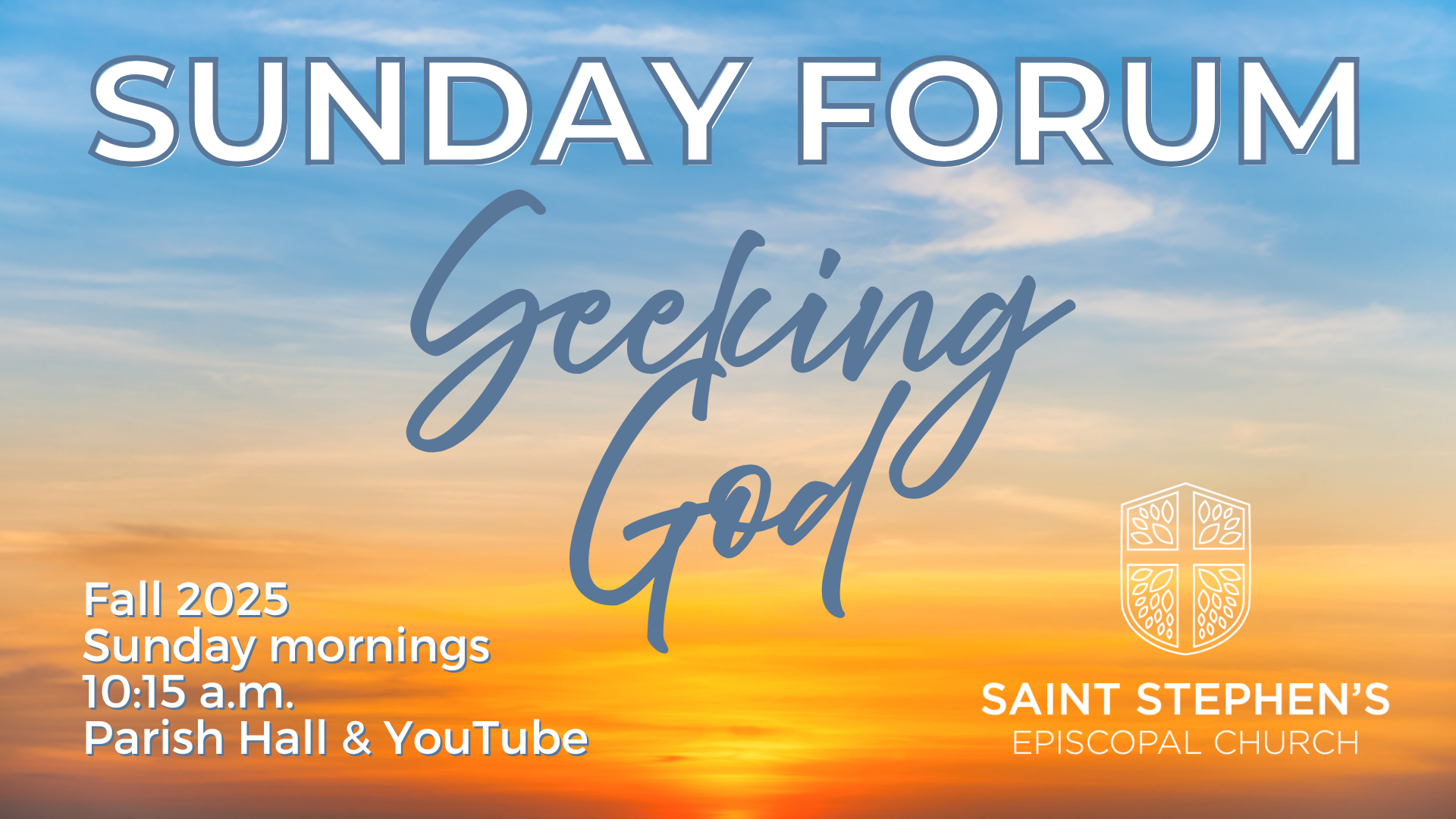 Our Sunday Forum is at 10:15 a.m. CT. in the Parish Hall.